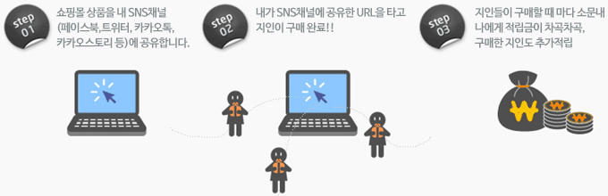 URL을 복사하신 후 사용하시는 메신저나 블로그, 카페 등 방문자들이 많은 게시판 등을 통해 상품을 추천하셔도 적립금을 지급해 드릴 수 있습니다.